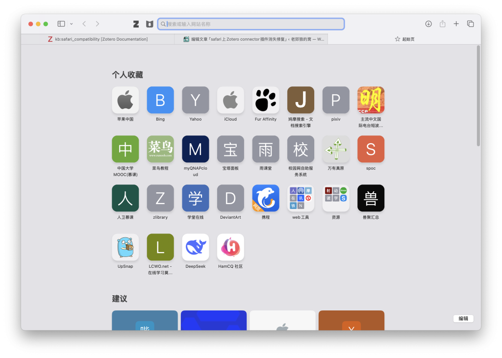使用Safari浏览器,突然发现Zotero connector插件从扩展中消失,导致无法自动从网页上保存文献。